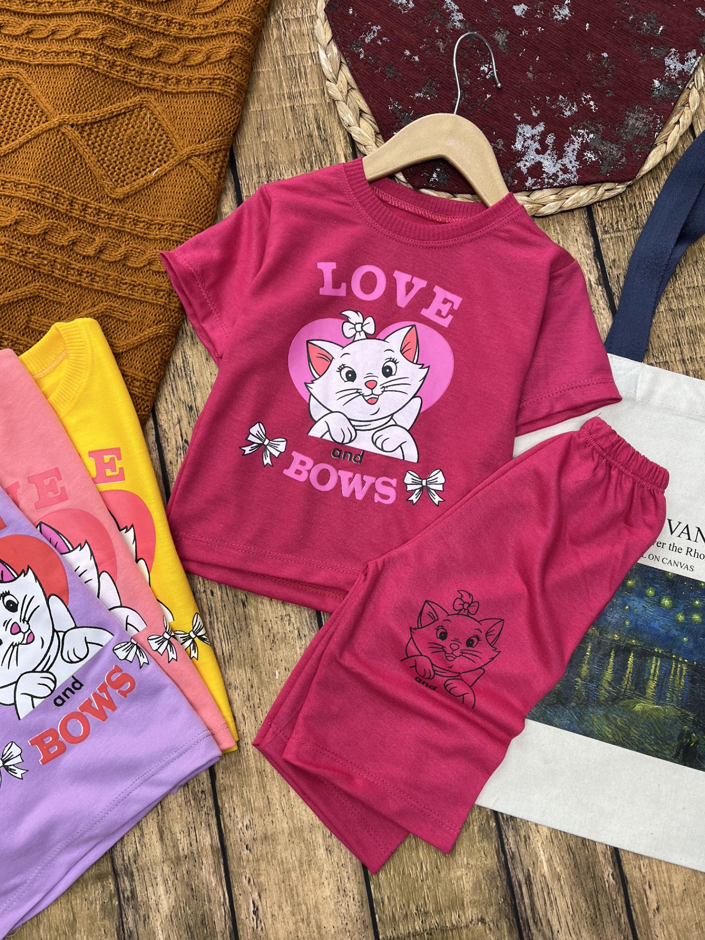 شومیز شلوارک دخترانه چاپ قلب مناسب ۱.۵ _ ۲ سال تا ۷ سال