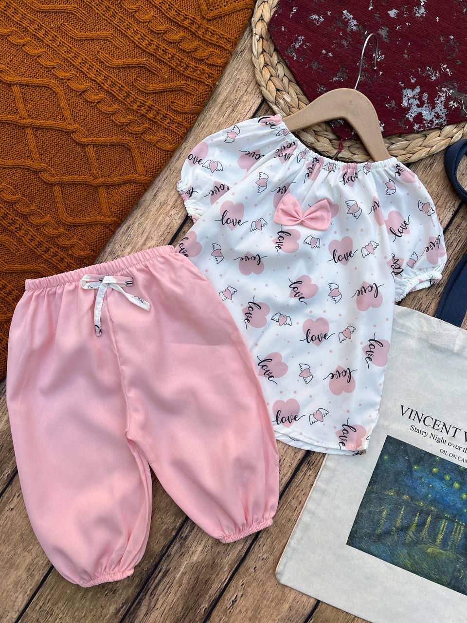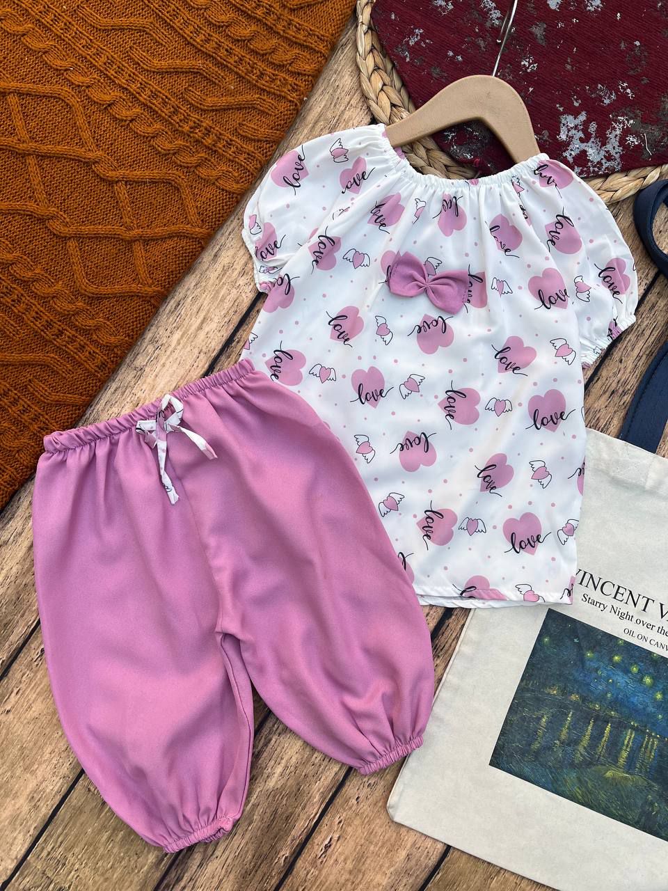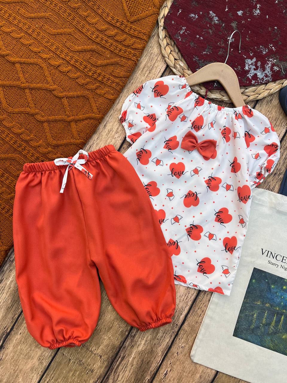1-نام محصول 📒؛ شومیز شلوارک دخترانه چاپ قلب 2-جنس پارچه 🍁؛ اسکاچی+ شلوارک بوگاتی 3-سایزبندی 🧩؛ ۳۵/۴۰/۴۵/۵۰